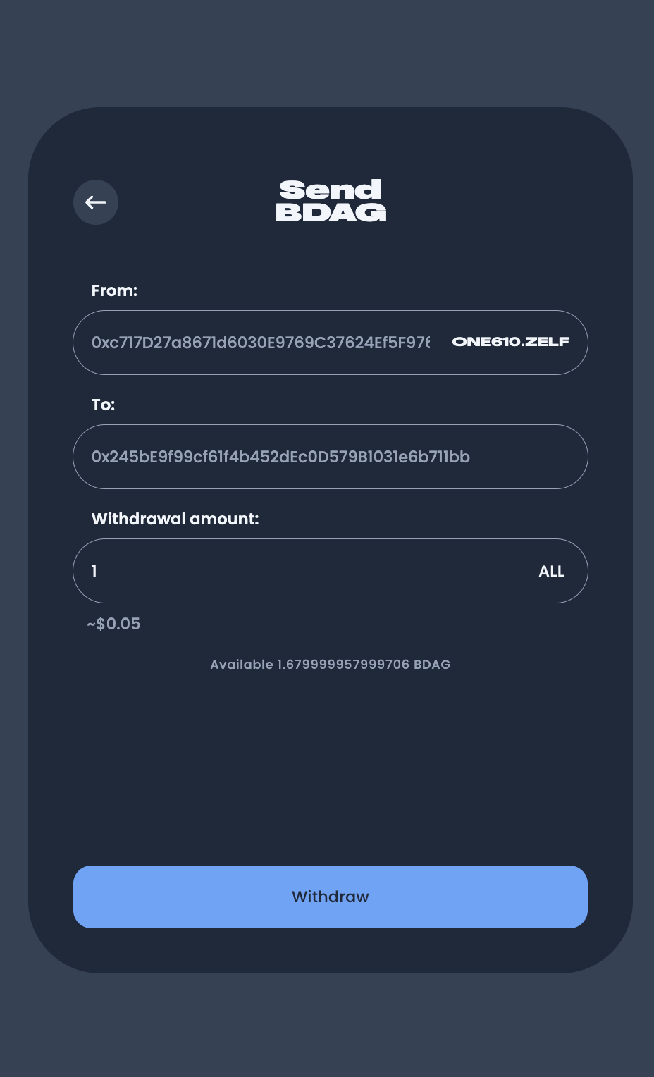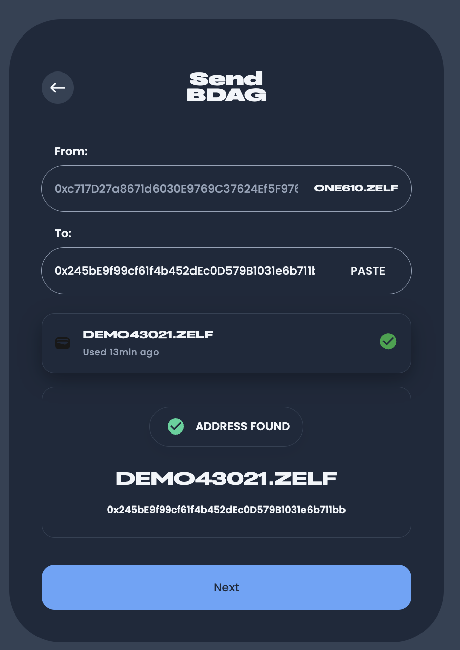 .zelfor.bdaghandle to simplify address sharing. No more long, confusing hex strings! - User-Friendly Interface: Experience the cleanest UI for managing your crypto assets.