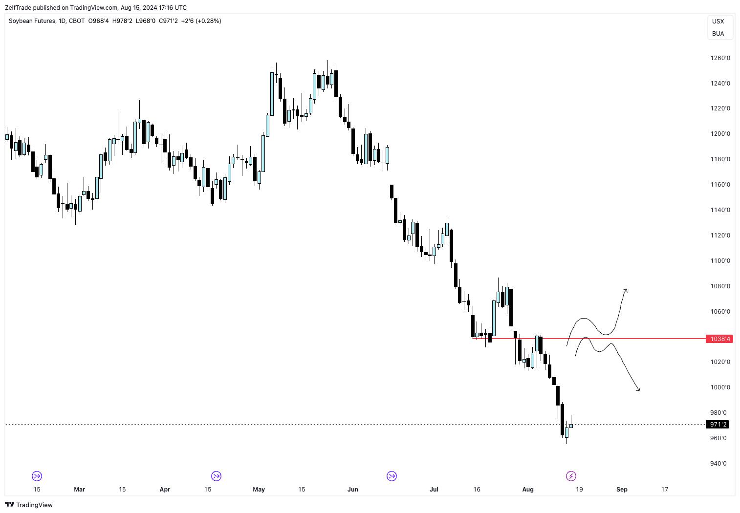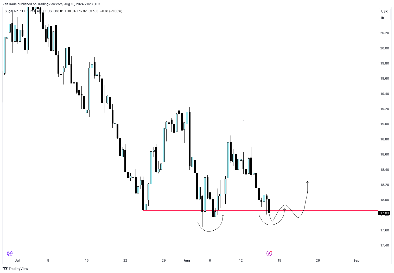Similar to our Wheat trade idea and as previously stated on our last report, we are currently trading at our ideal long entry (aggressive entry anticipating a pump). Ideally we want a strong bullish reaction soon here. If we lose support at $17.6 is game over, trade invalidated.