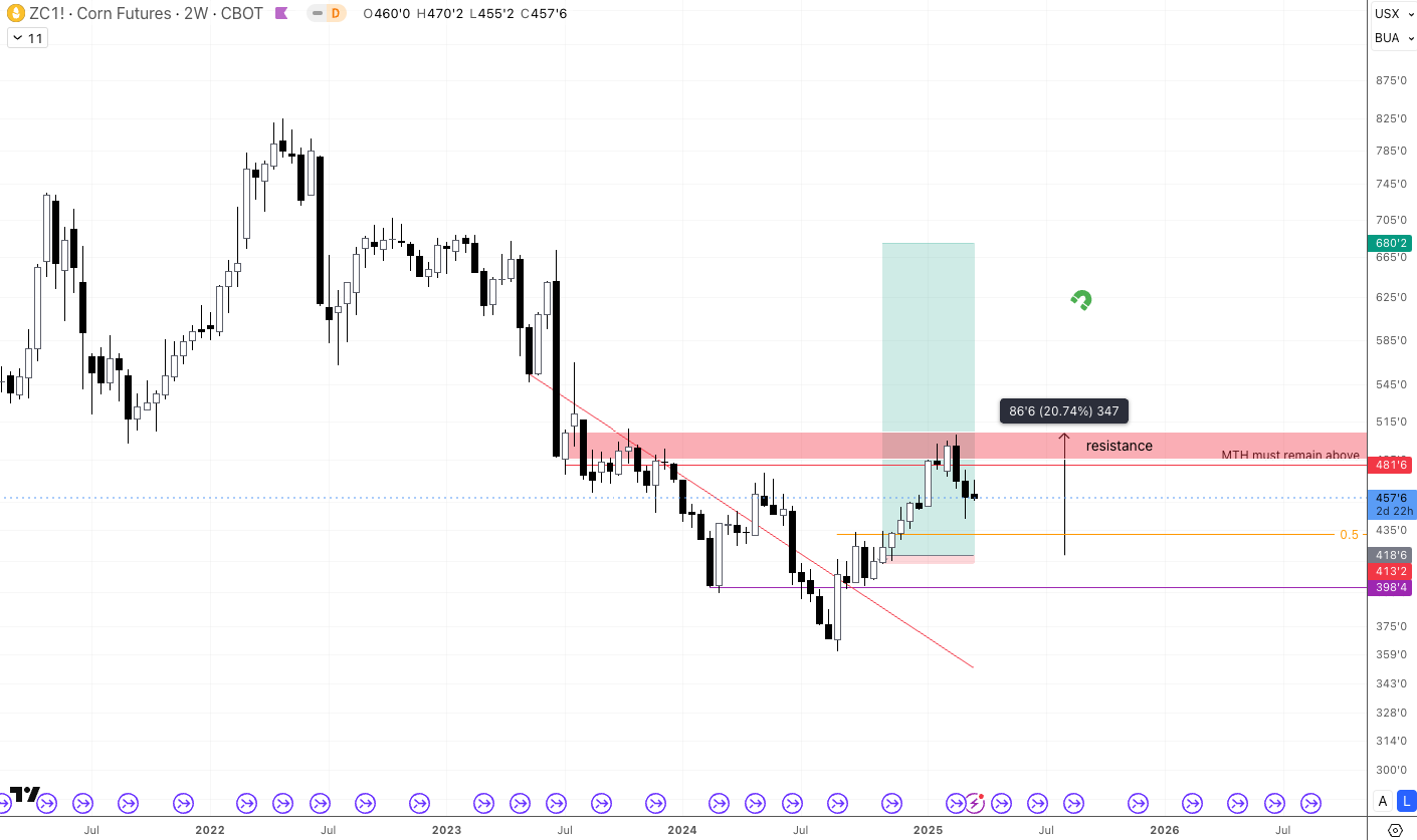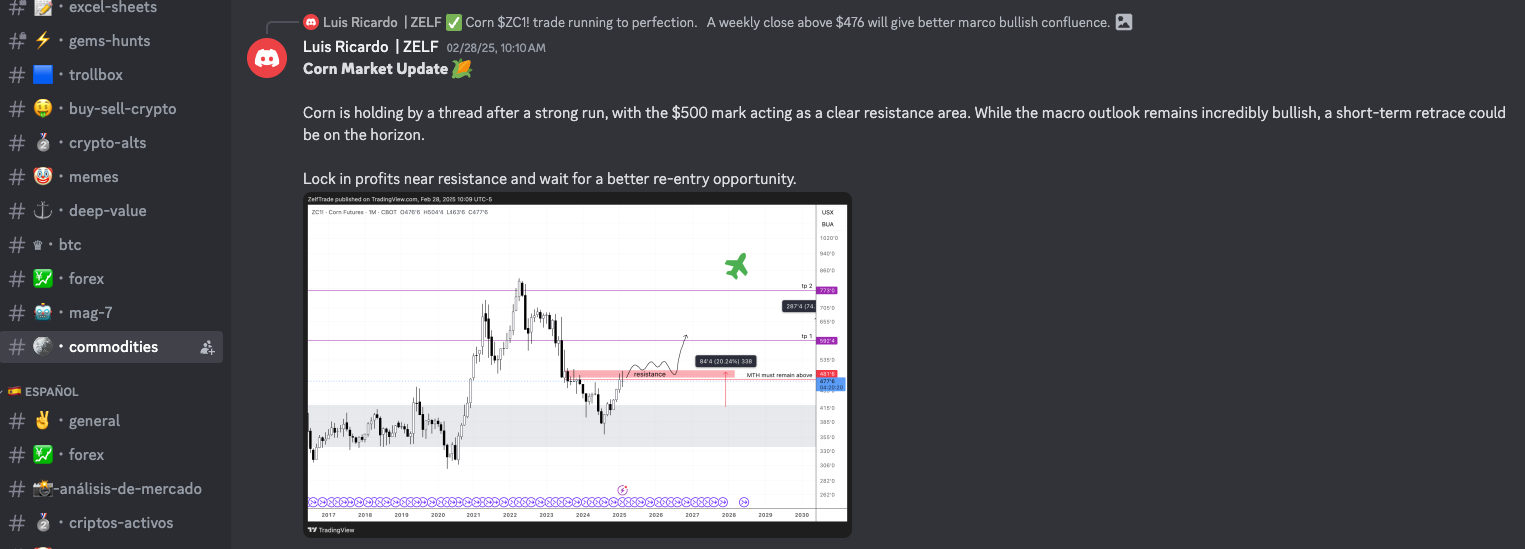 Corn (ZC1!) just as flagged in our Discord discussion, that key resistance level held firm and triggered a sharp rejection—hope you banked some of those +20% gains from the entry!