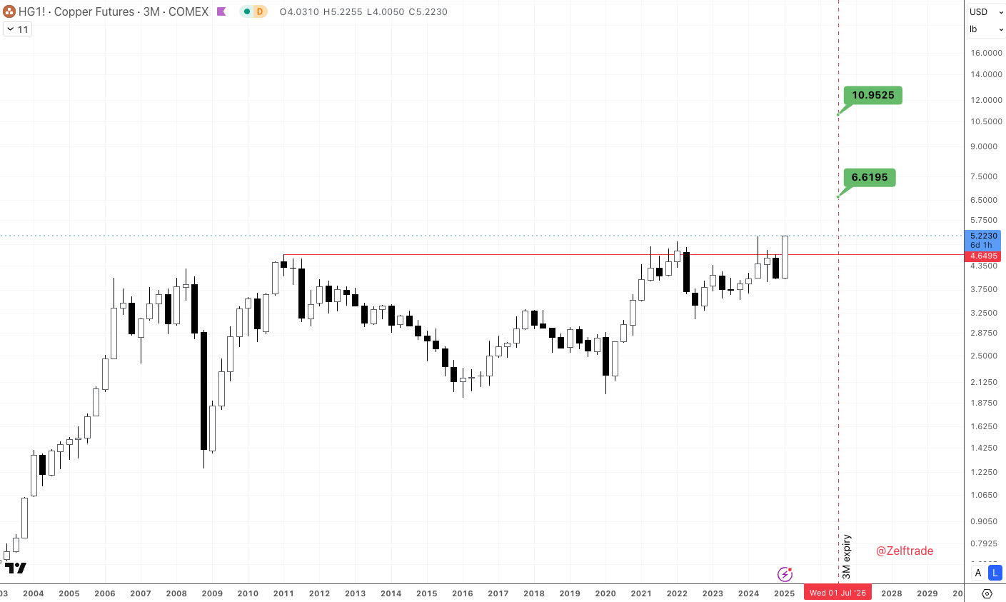 Copper (HG1!) is showing insane macro strength with a bullish engulfing candle on the 3M chart, confirming a major trend reversal and a Time at Mode bullish trend confirmation to the upside with targets of at least $7 and $11 by July 2026. While we'll wait for a pullback for optimal entry, the macro setup remains EXPLOSIVELY BULLISH, meaning any dips should be treated as high-conviction macro buying opportunities.