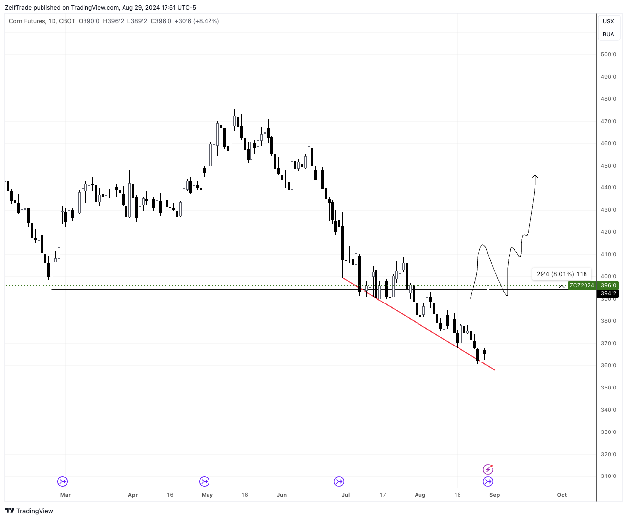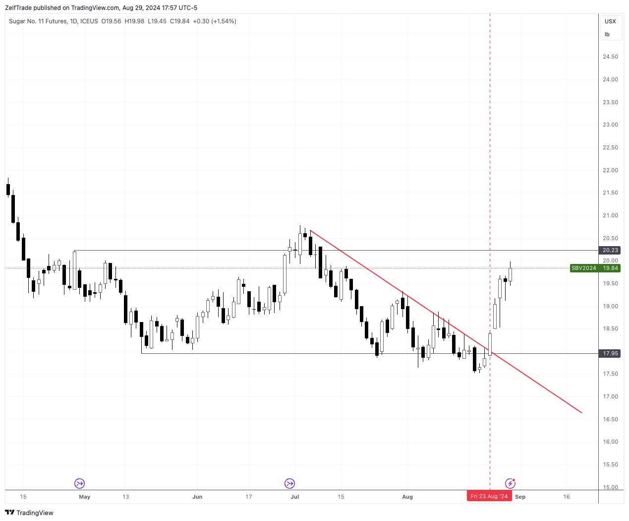 Perfect bullish reversal here, the bottom seems to be in. Any retrace towards $18 is a must buy although it looks like price wants to keep on trending higher. No rush to jump in right now, the ideal entry should have been market price long on August 23rd huge reversal daily expansive bar.