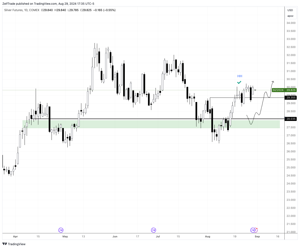 Ideal long entry idea remains, we are waiting for a retrace towards $28.