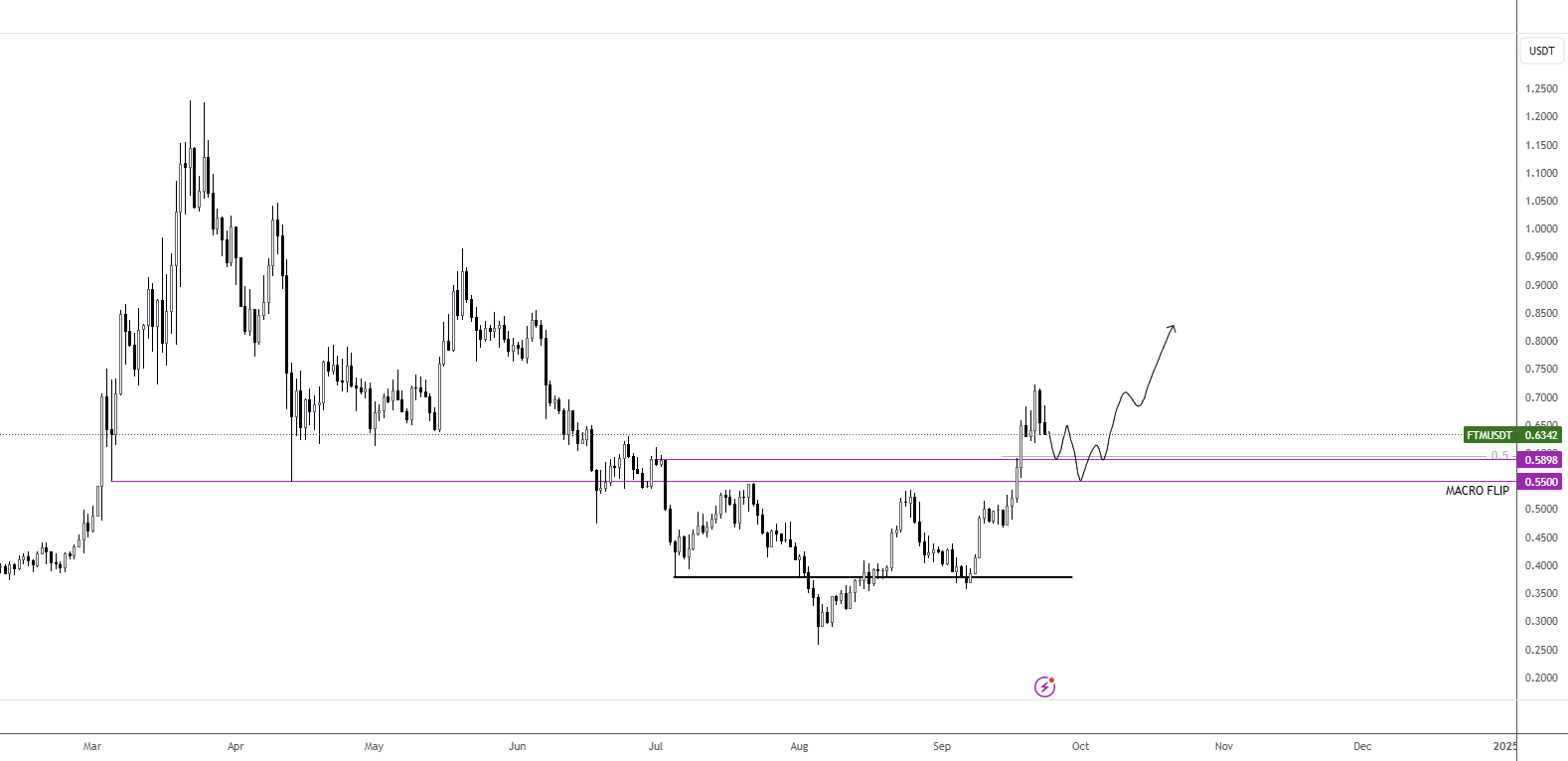 Consider buying at 58c and 55c. UPCOM:FTM This one has shown the following: Flipped the macro level—bullish now Weekly and monthly have fired bullish signals Strong multiyear trend Overall, this is one of the most exciting charts heading into Q4!