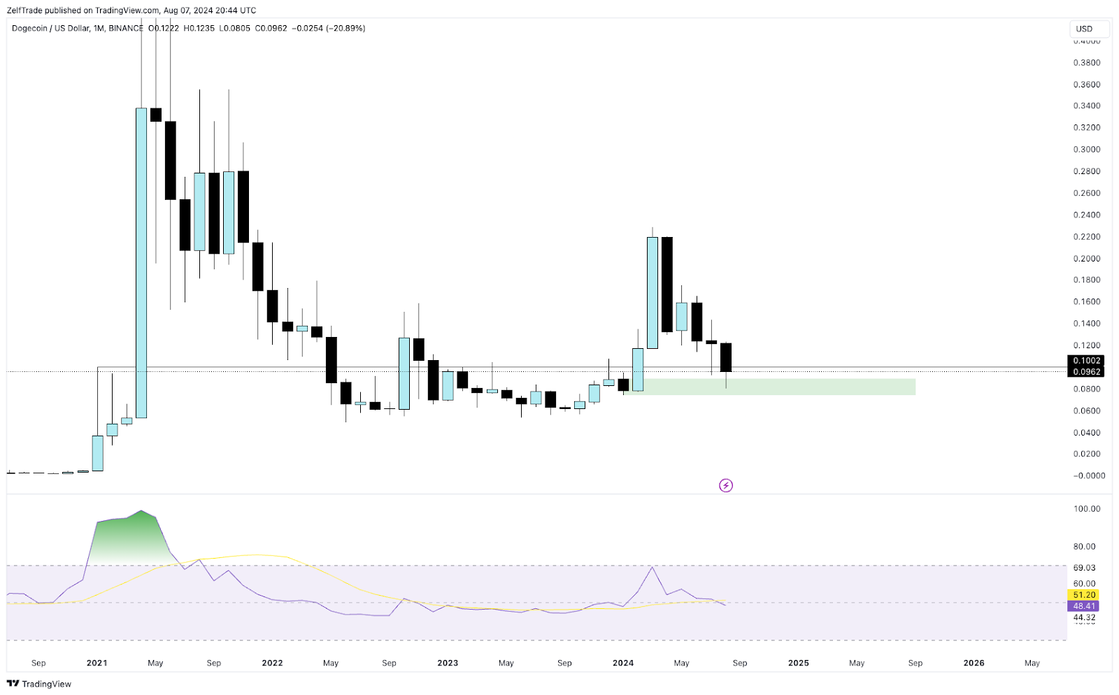 We hit our ideal macro long entry of $90 -$80 here, now what? Monthly RSI is just above the 50 which is great. July’s monthly closed with a doji candle indicating possible reversal. Prices must start moving up soon if we want this level to hold.