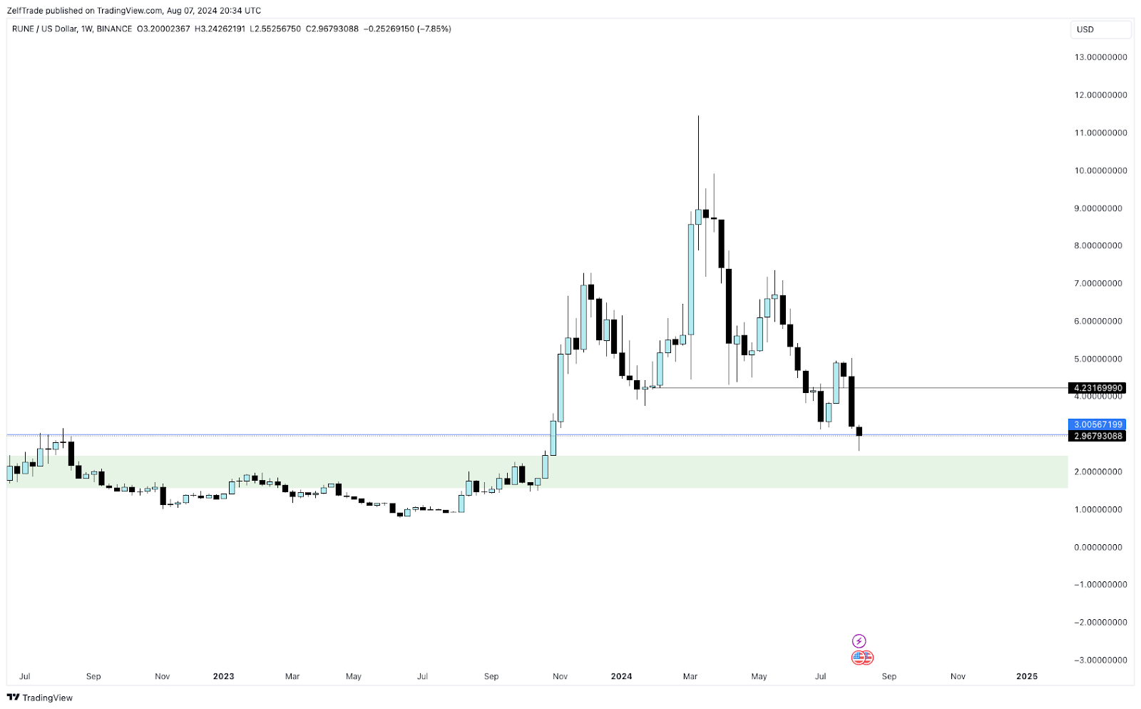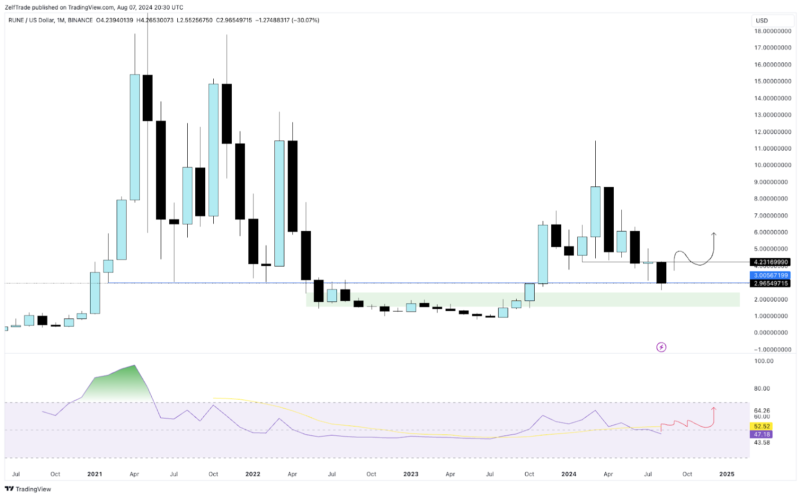 We are at a critical point right now. Monthly RSI is currently sitting at 50 level and positive reaction here must happen soon. The $3 level must act as support, otherwise we’ll be going down to low $2’s. From a macro view if $3 holds might be in for a pump towards low $4’s. For further upside to continue we must reclaim above $4.2 as support.