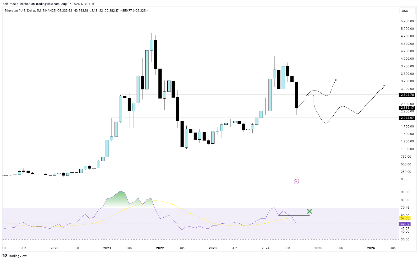 For now, the price broke bearishly. It is crucial to reclaim back above $2,800 for further upside. If $2,800 acts as resistance then we could easily create a trading range from $2,800-$2,000 and dip as low as $1,600 and still be completely bullish (this will be the ONCE IN A LIFETIME LONG opportunity).