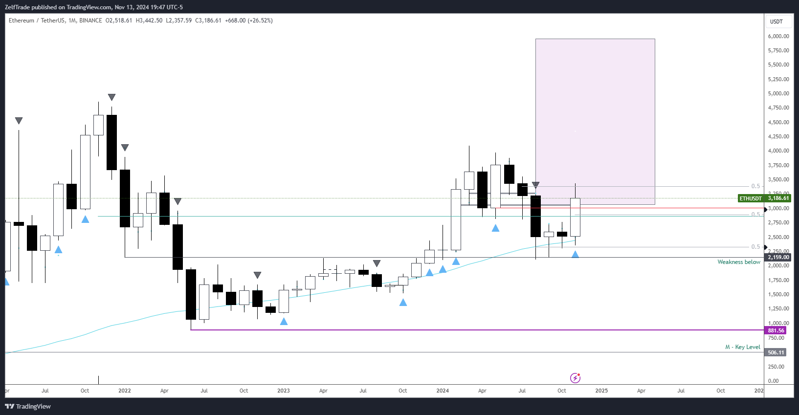 - If youâre looking to take on more risk in Q1, a retest below $3k could provide fantastic entry points. This aligns with the monthly block that was lost during August's drop, making it a key level to watch.