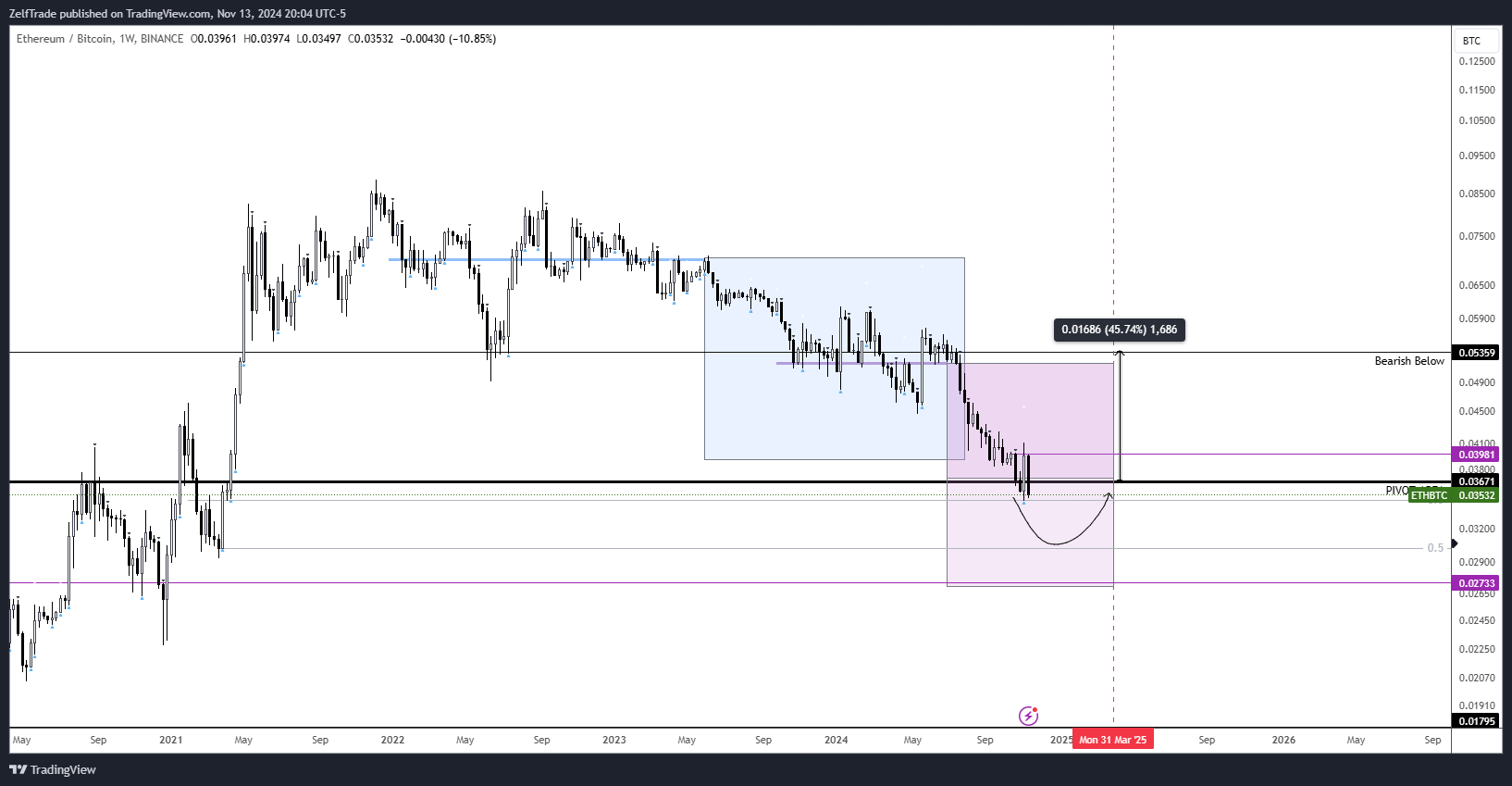 - Alternatively, buying above $3400 could trigger FOMO buyers into ETH. This is a pivotal zone where the bears will likely defend, but I doubt it will hold through Q1.