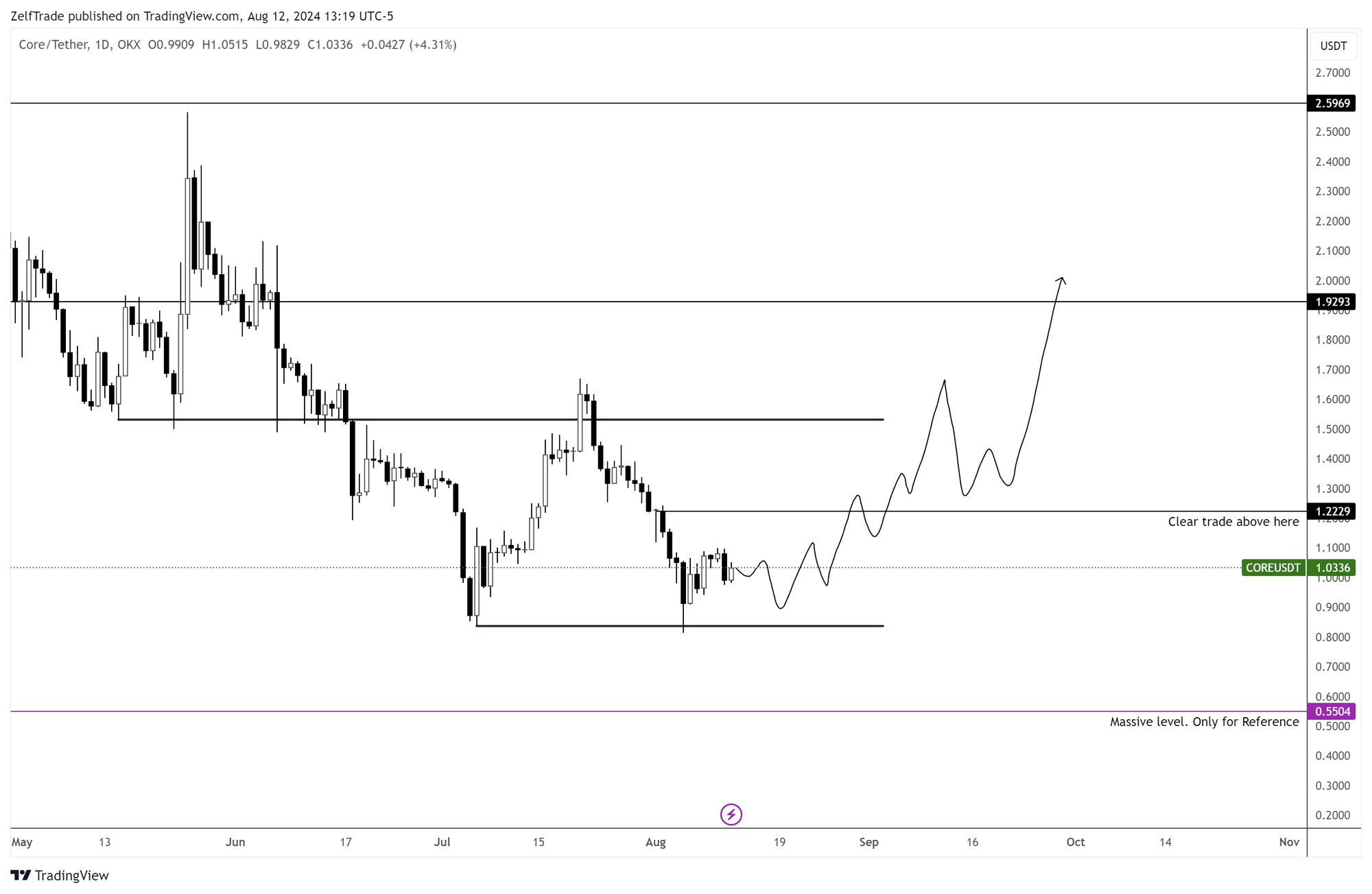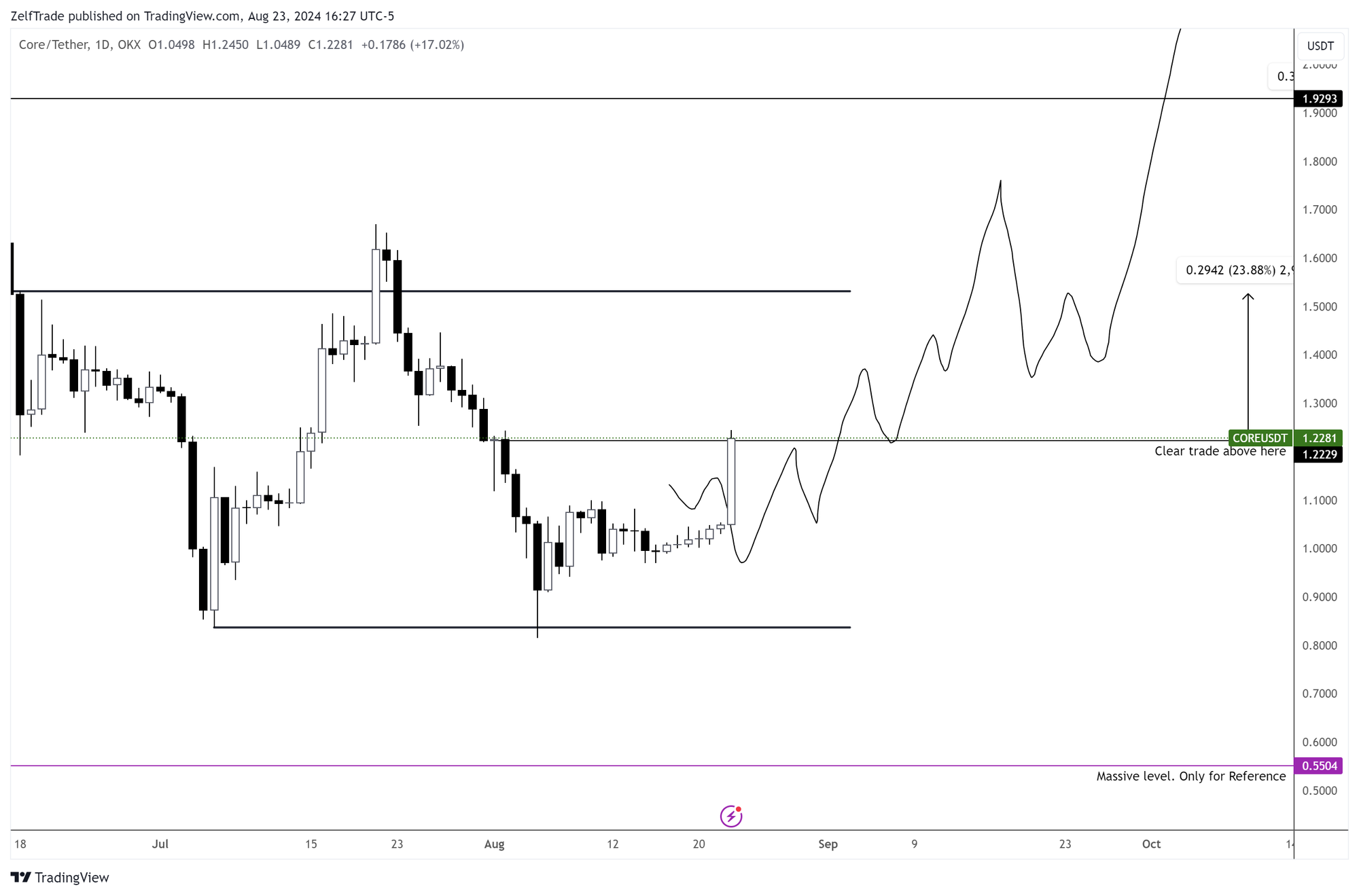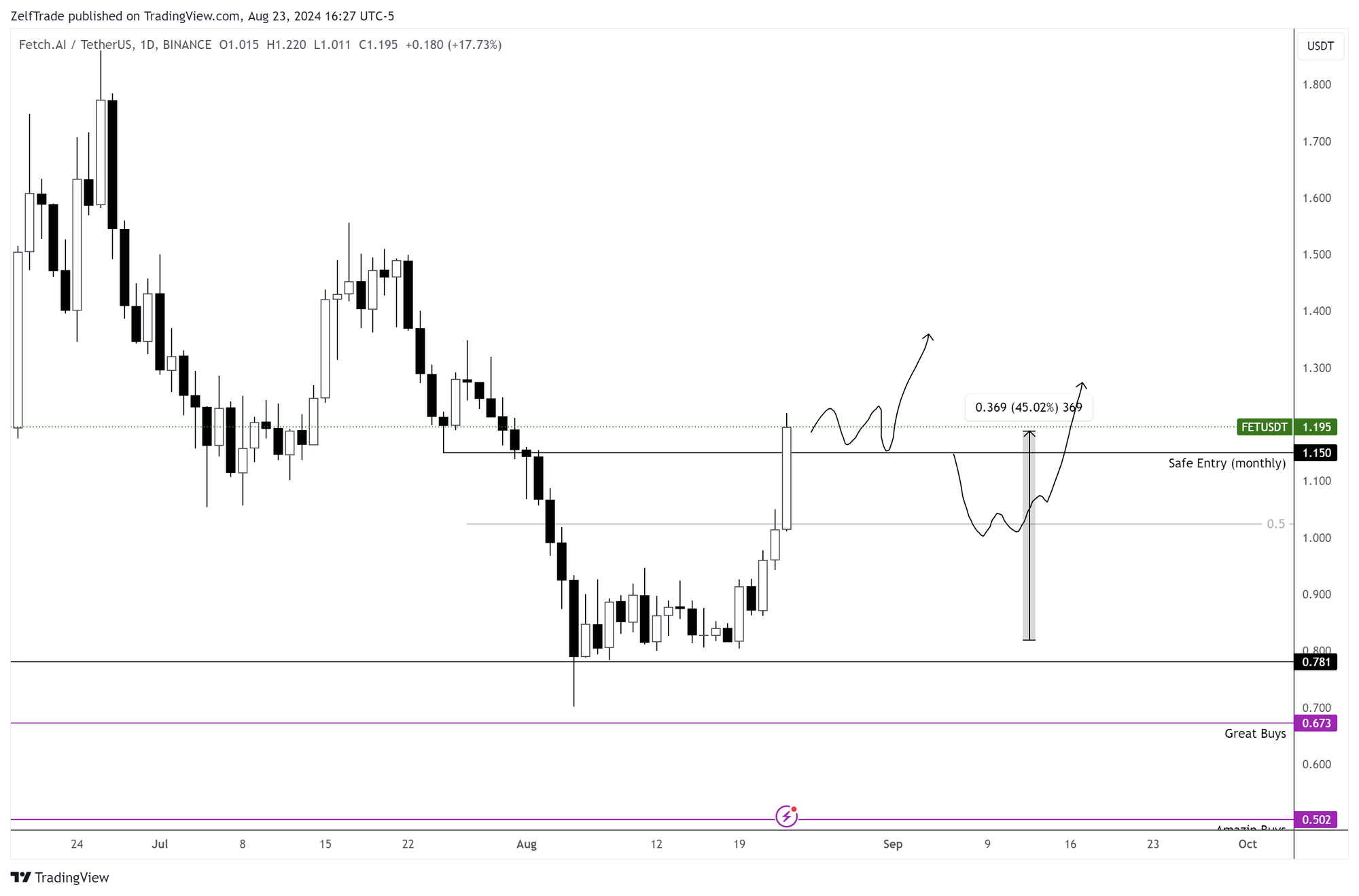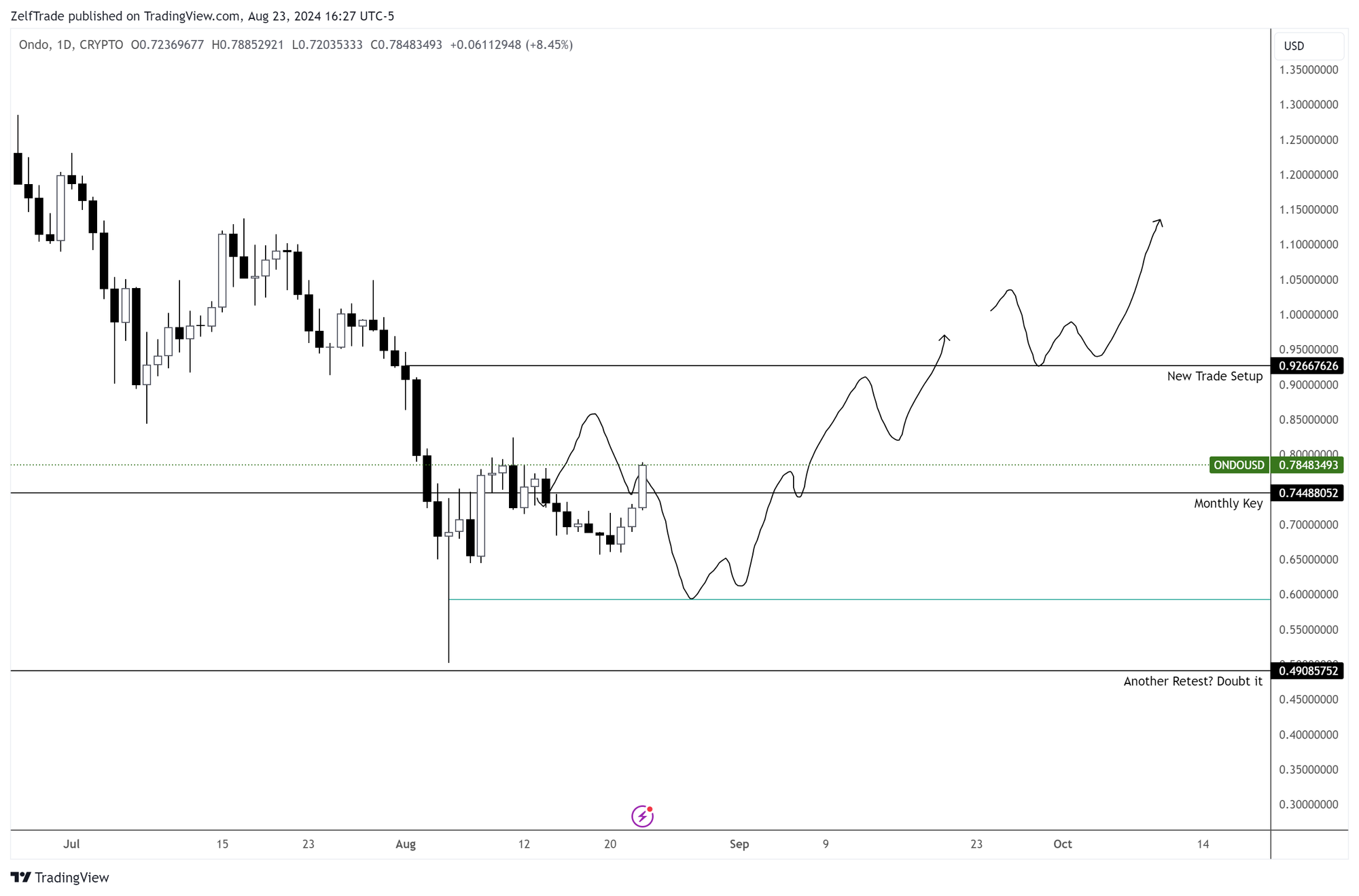 Confirmed a daily bullish signal on August 19. So those of us who were expecting a pullback at $0.67 were left out. For those who entered based on the main point of the previous post ( We are in Support). You have two options: