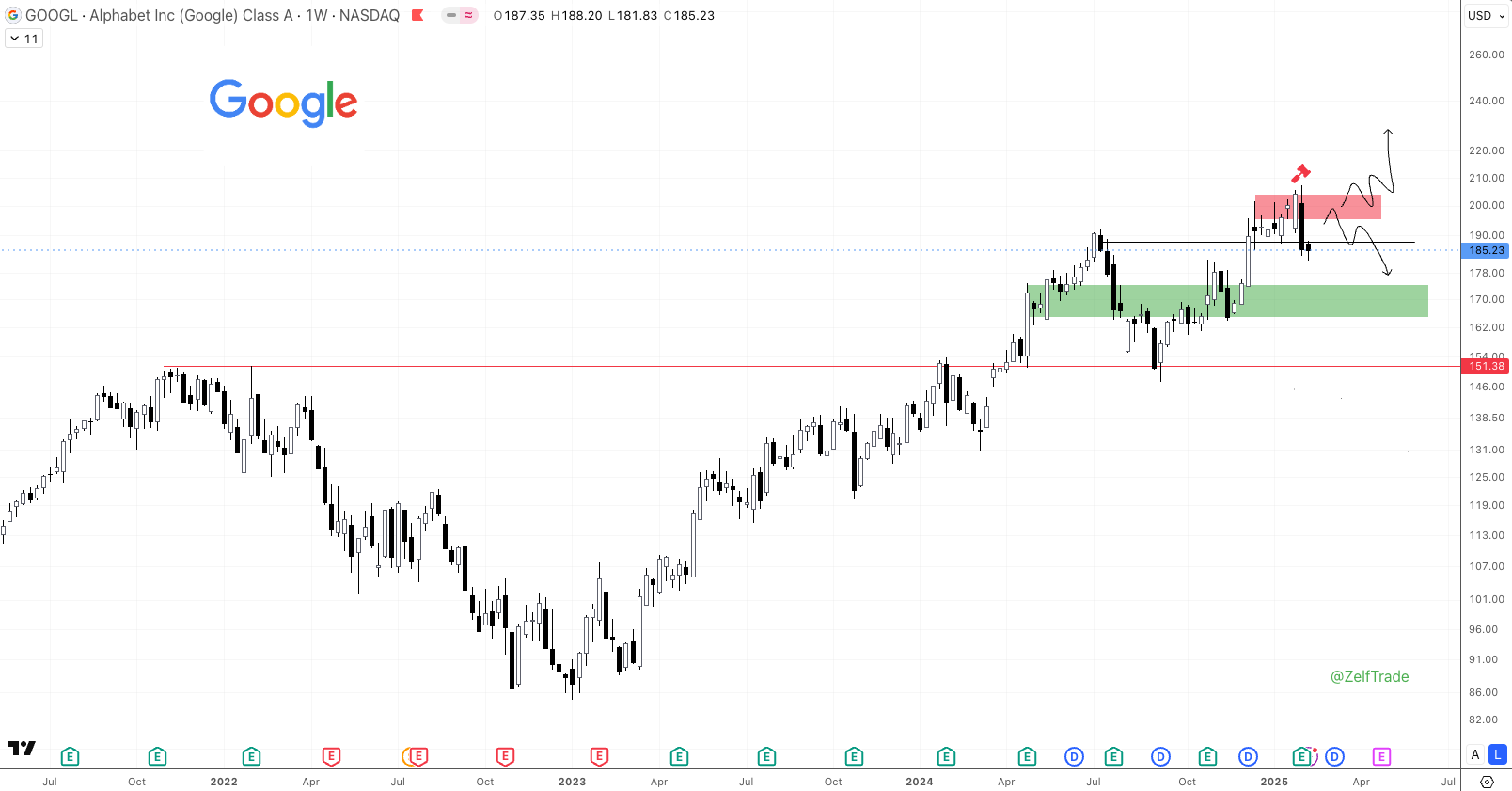 The previous range-bound strategy for GOOGL, which involved buying near support and selling near the range high at $202, has been invalidated by the confirmation of a weekly bearish engulfing candle shifting the outlook from neutral to bearish. Further downside is likely.