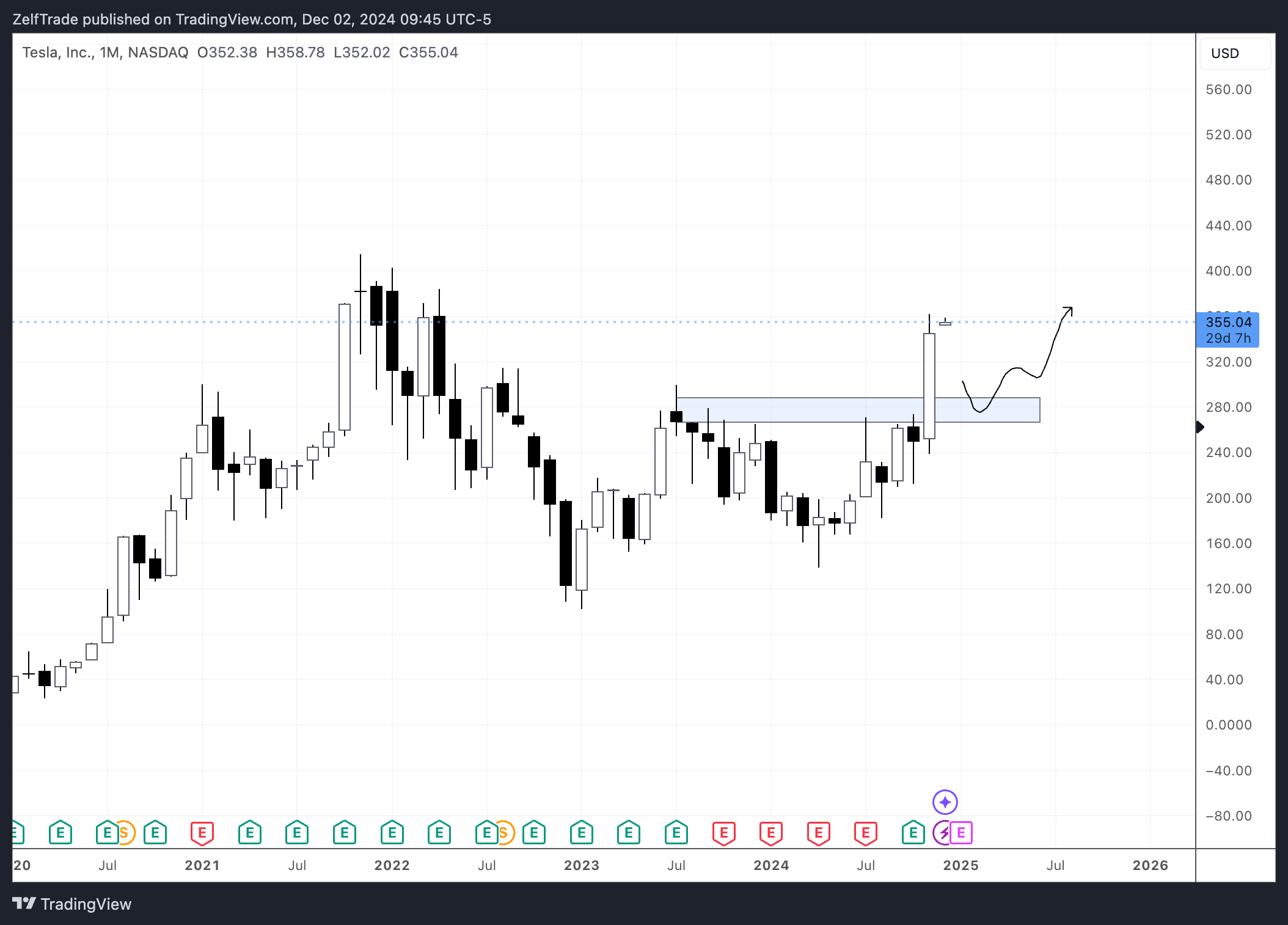Insane monthly close and chart looks like it wants to keep going for a new all time high soon. IDEAL re-entry for any bystander should be at around $260's which might seem to good to be true but steep retraces DO happen and price action will completely remain bullish if it does.