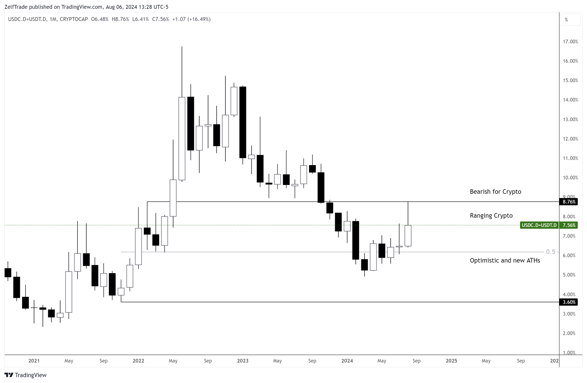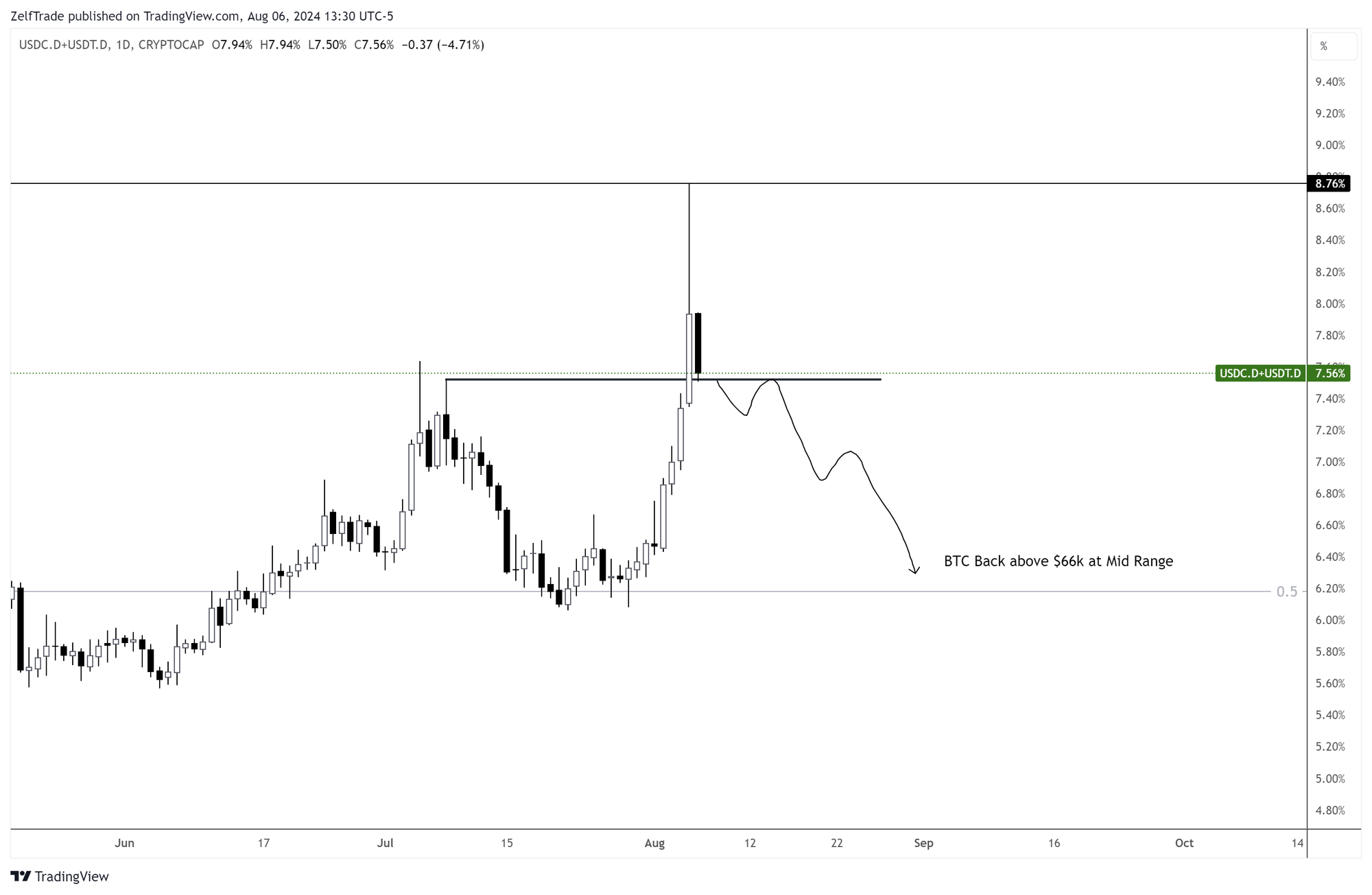 Many of the market participants have been sitting on the sidelines in stables since March '24, causing this big momentum to hit resistance directly. It doesn't hurt to point out that most of this upside move was driven by weakness in altcoins.