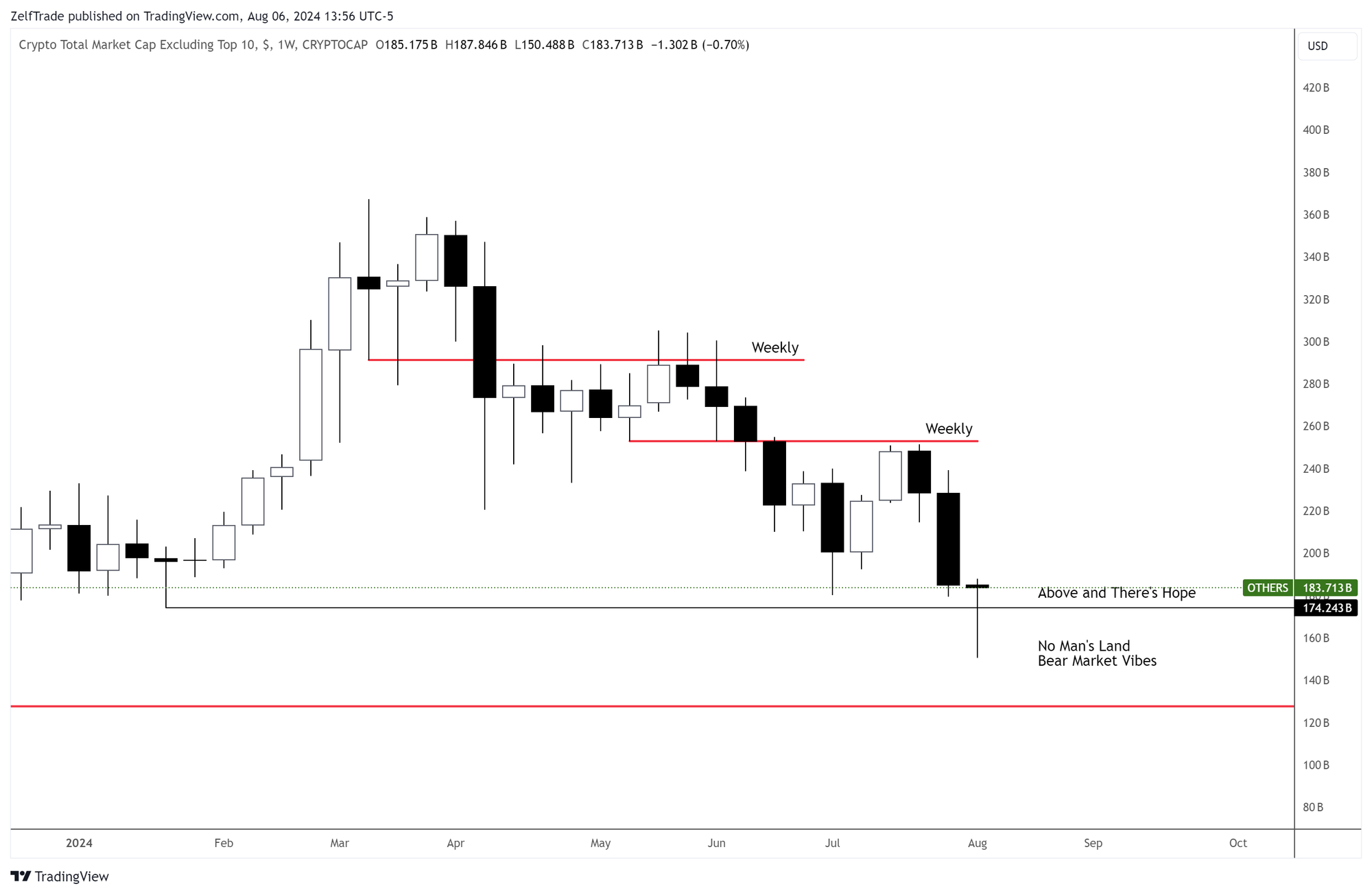 - The daily chart is currently above the safety zone and a change in character will occur if $200 billion is regained (on the daily).